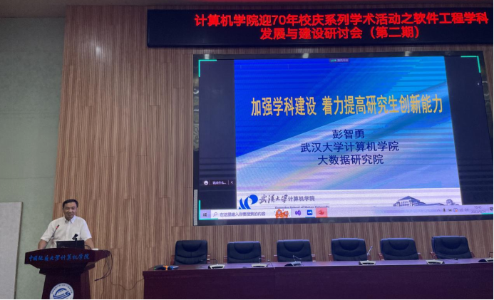 李国昌致辞。他对受邀专家的到来表示热烈欢迎和诚挚感谢,他指出,学院举办此次研讨会既是迎接校庆70周年系列的常规学术活动,也是学院深化软件工程学科发展与建设的重要举措。